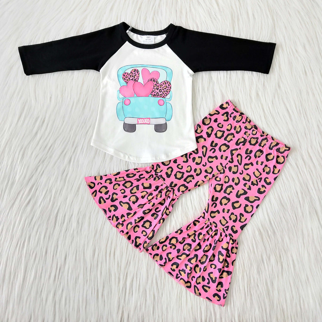 6 B7-24 Valentine's Day Long Sleeve and Pink Leopard Bell Bottoms Pants Sets